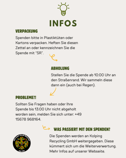 Die Kleidung wird nach der Sammlung in Niederkassel durch unseren Sammelpartner (seit längerem die Kolping Recycling GmbH) weiterverwendet.
